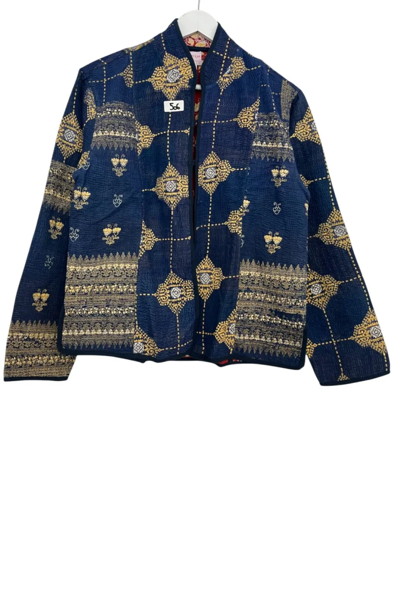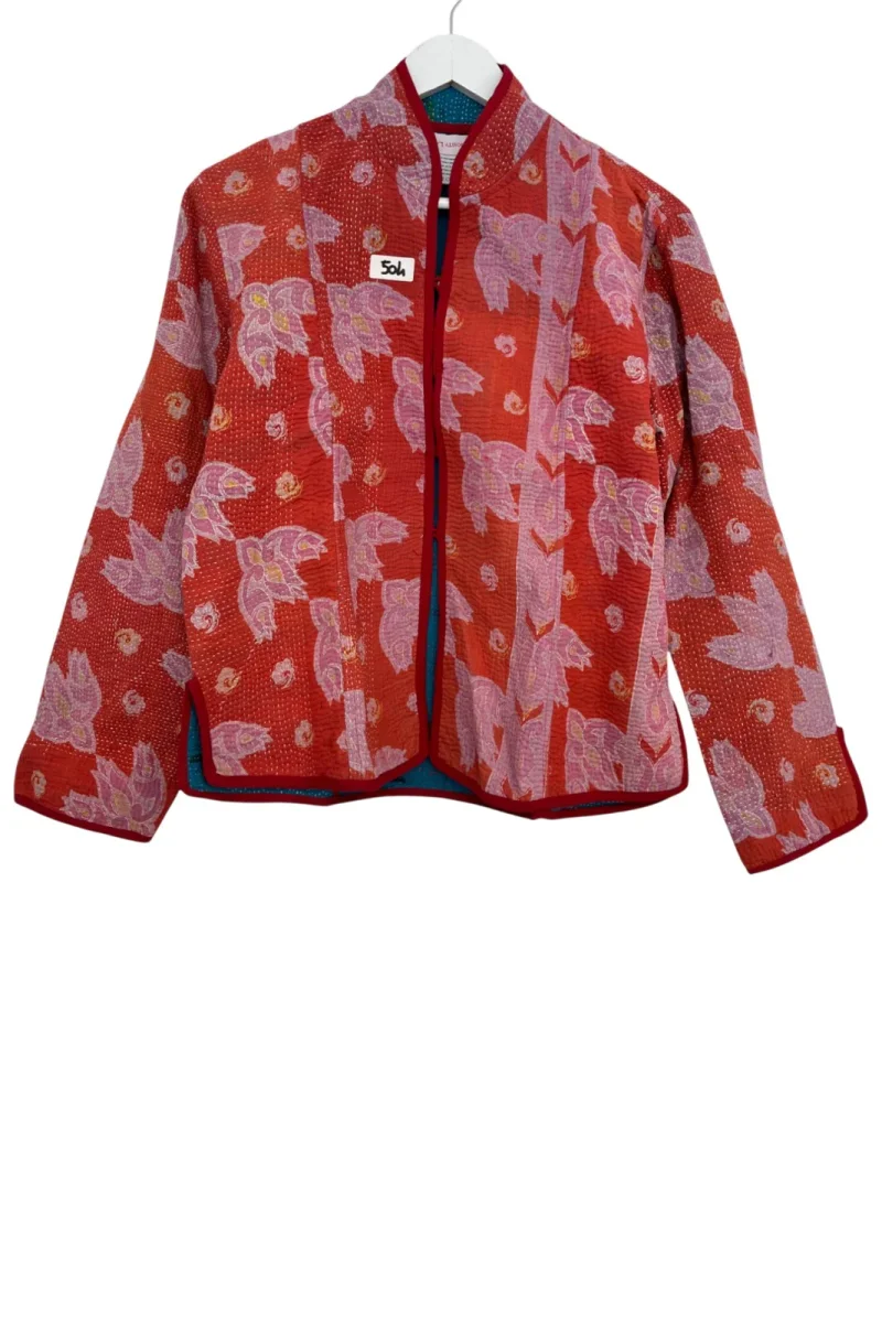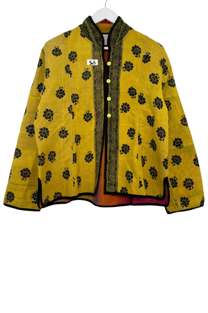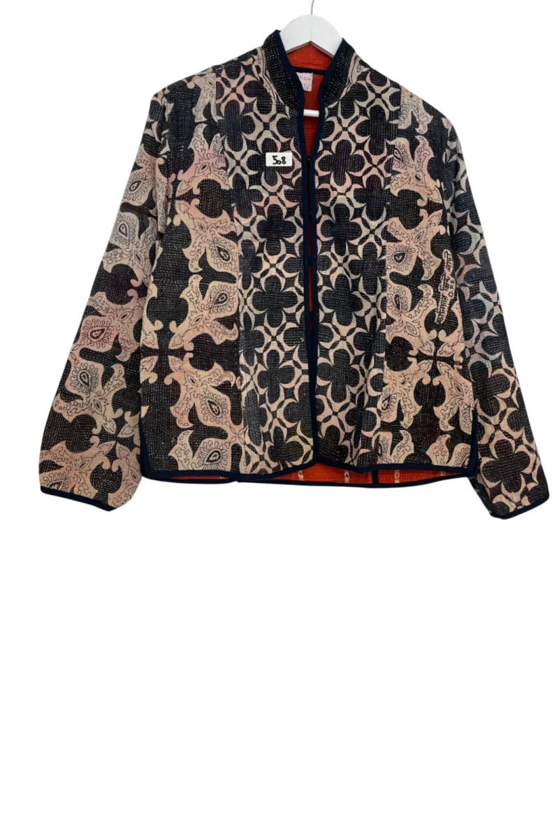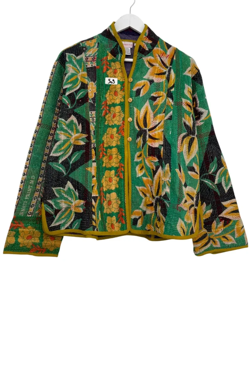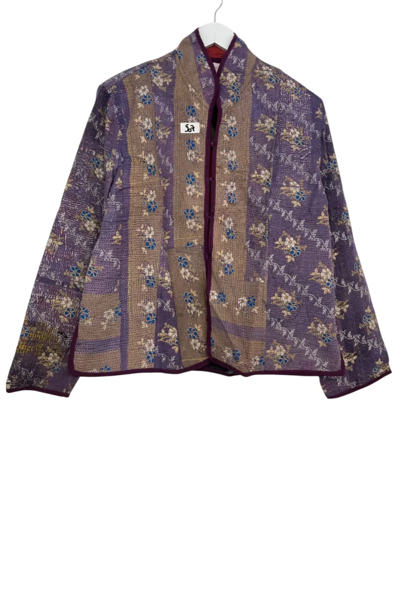 La petite veste parfaite en Kantha. Avec ses boutons et son col montant, elle se porte à l’extérieur comme à l’intérieur pour apporter une touche d’originalité à chaque tenue.