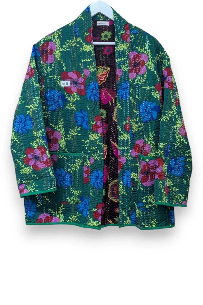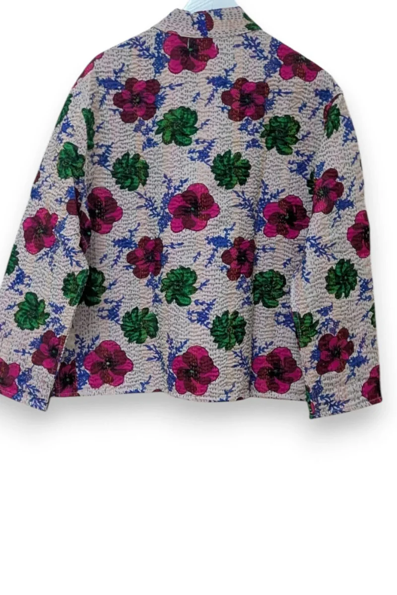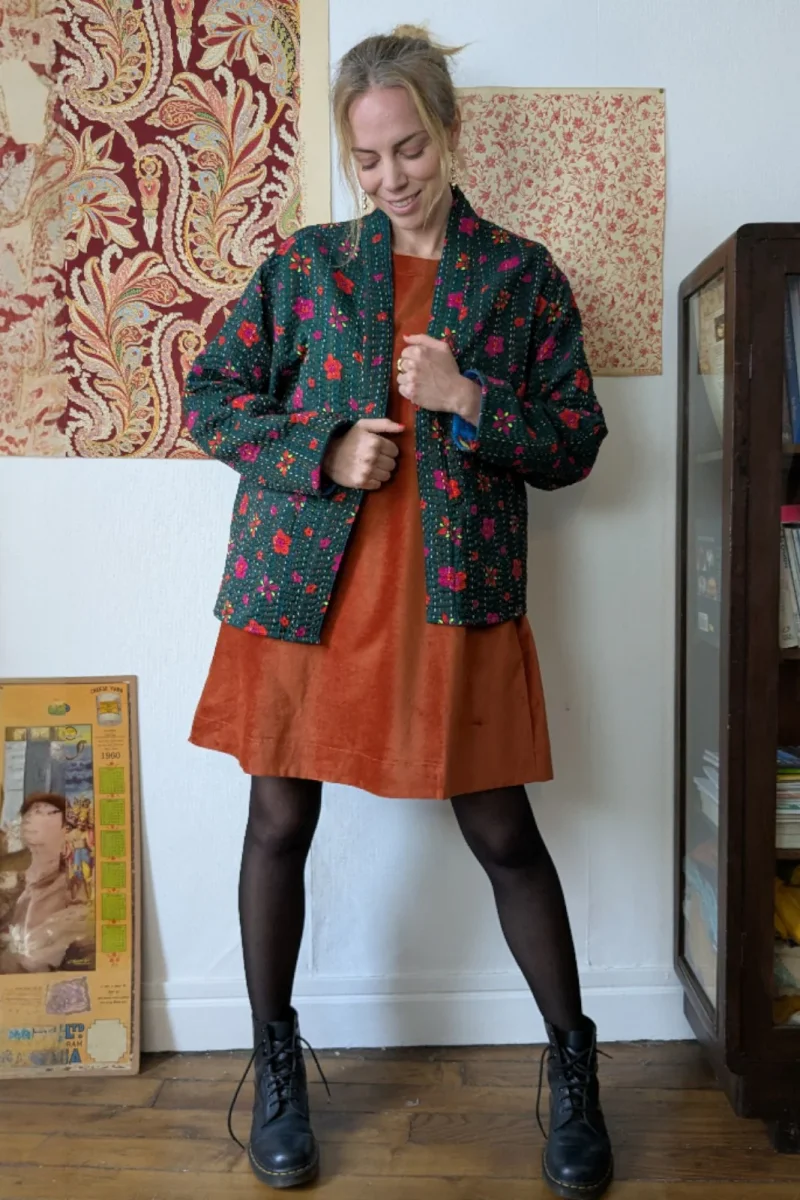 Réalisée en Kantha réimprimé au bloc de bois, ses motifs sont frais et ses couleurs vibrantes.