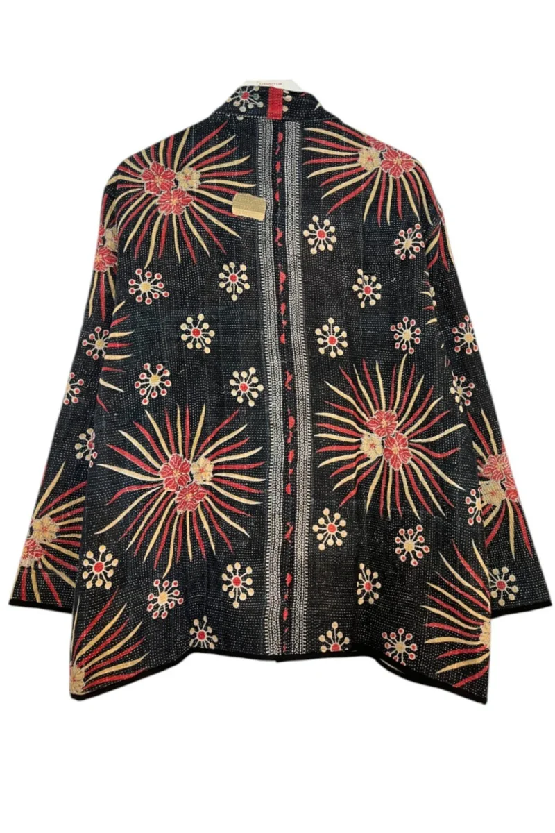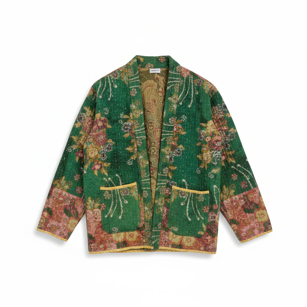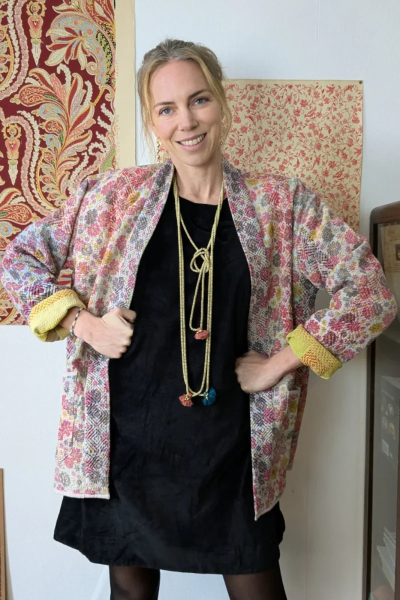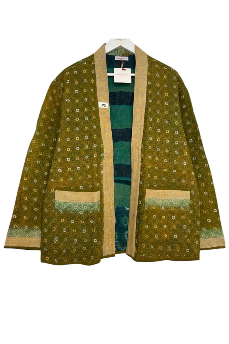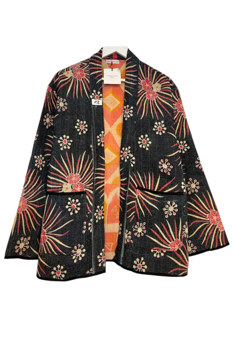 Une coupe kimono tendance qu’on adore ! Portez-la sur votre robe préférée, ou avec un jean pour un look plus décontracté. Veste réversible mi-longue, manches longues, poches plaquées. Taille unique pour des pièces uniques, convient pour les tailles 36 à 42.