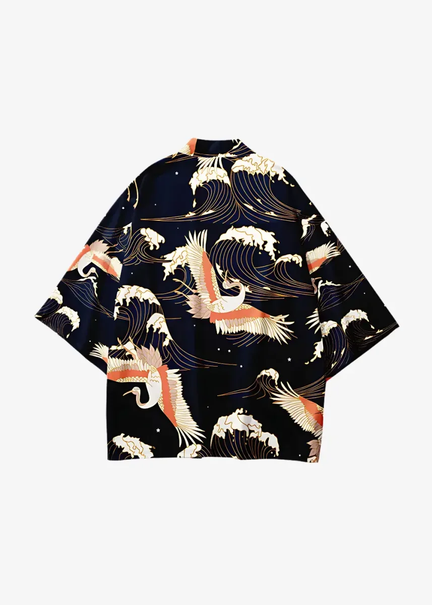 Veste Kimono Style Japonais Grues
