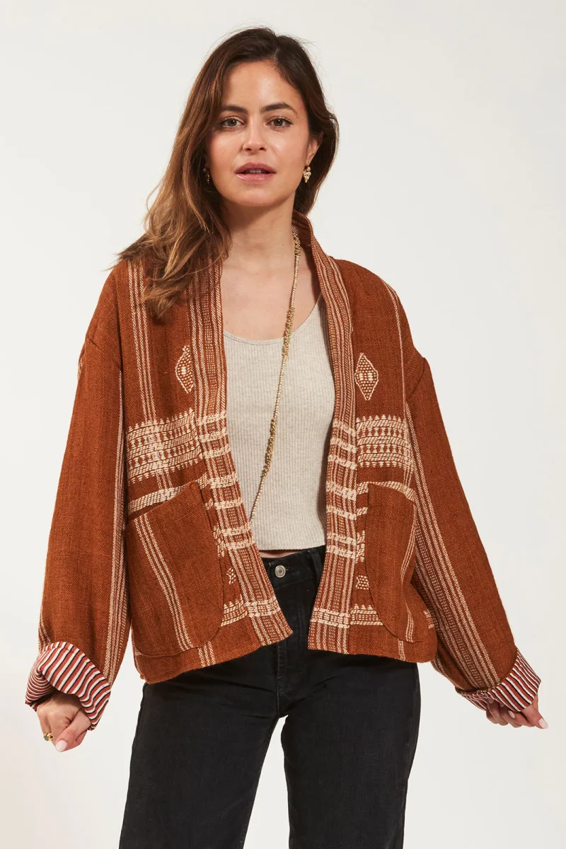 Chaque veste est confectionnée à la main et peut présenter de légères variations qui enrichissent son charme et garantissent son unicité sur le marché.