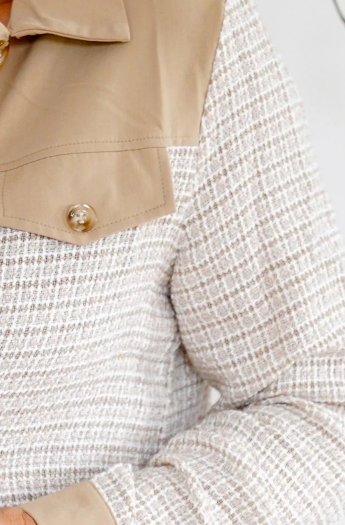 Taille Bi-matière Beige et rose très léger Entièrement boutonné devant Col chemise Boutonné aux manches Non doublée A porter en veste ou en pull