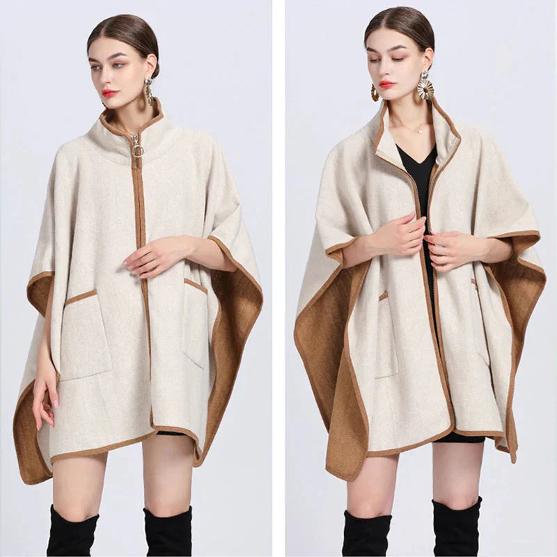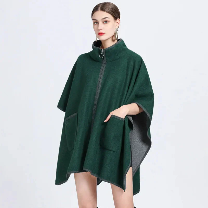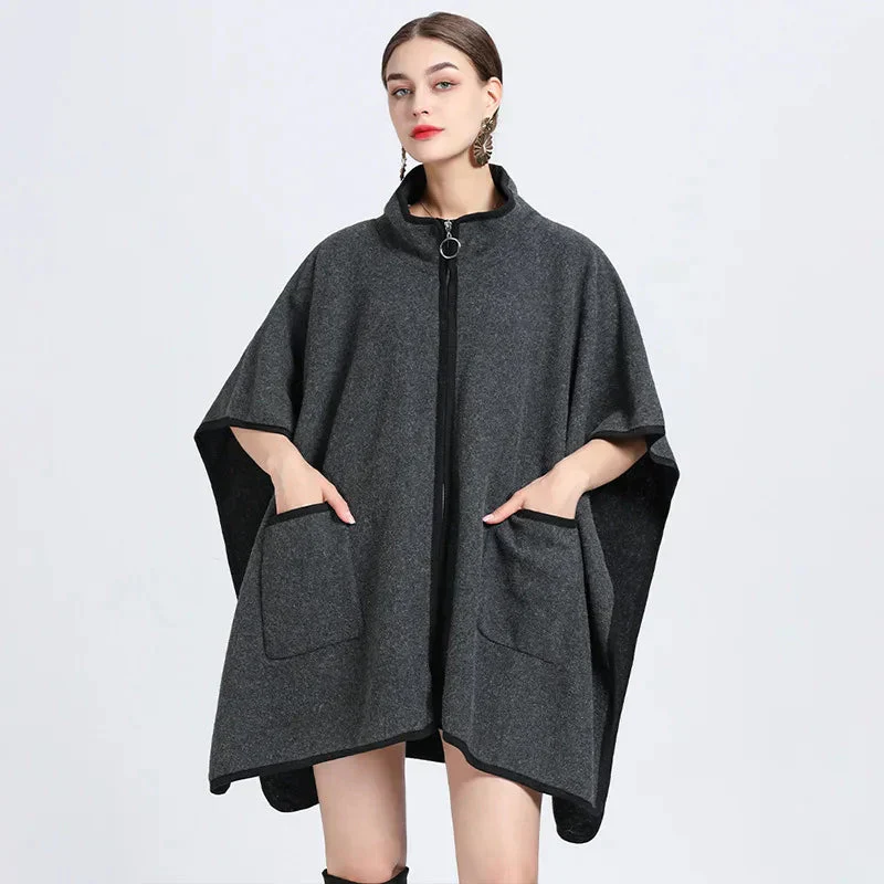 Poncho veste moderne et élégant à poches et fermeture éclair